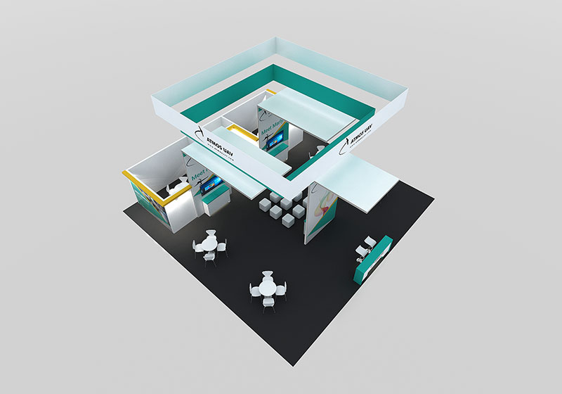 Maximize your brand presence on the exhibition floor with our customized island inline 40×40 trade show booth rental and displays.